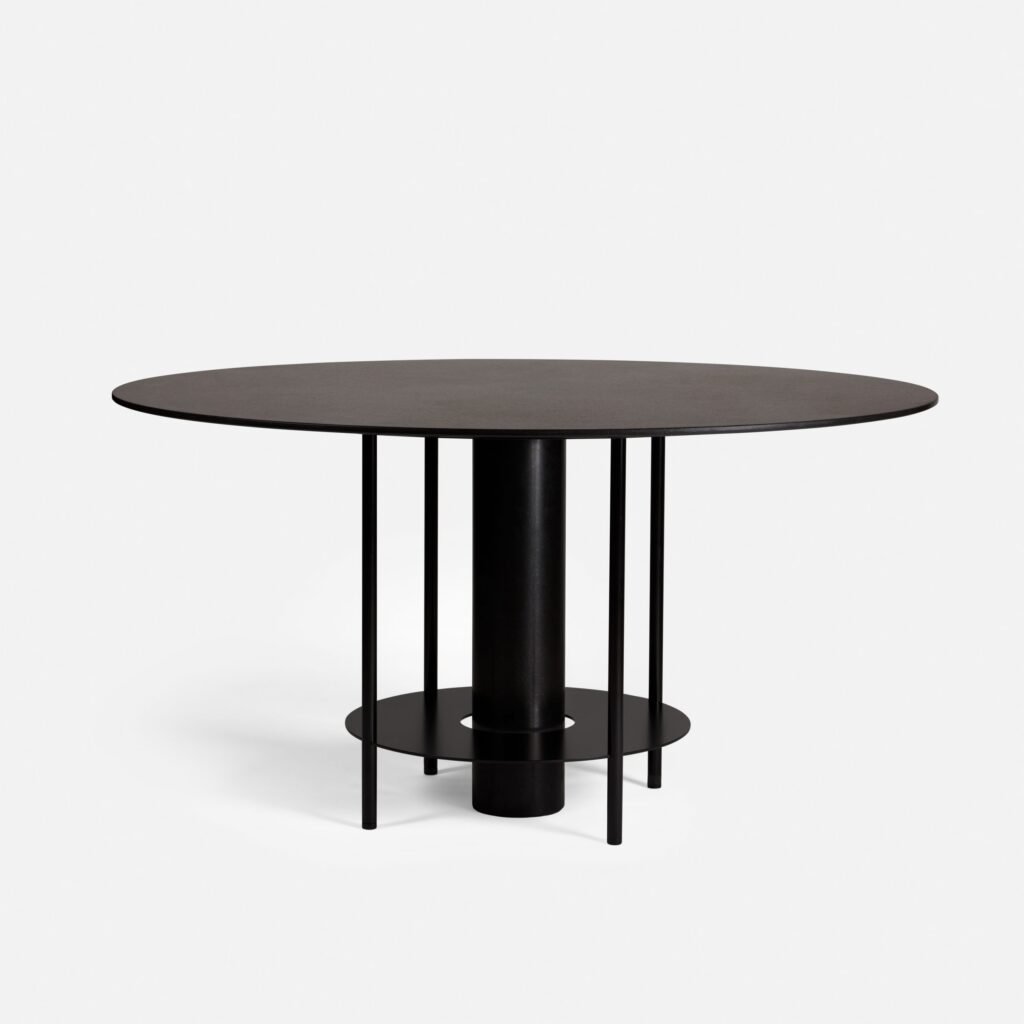 Dining table combining the materials of black steel and diabase. Manufactured by artisan Kullaro.